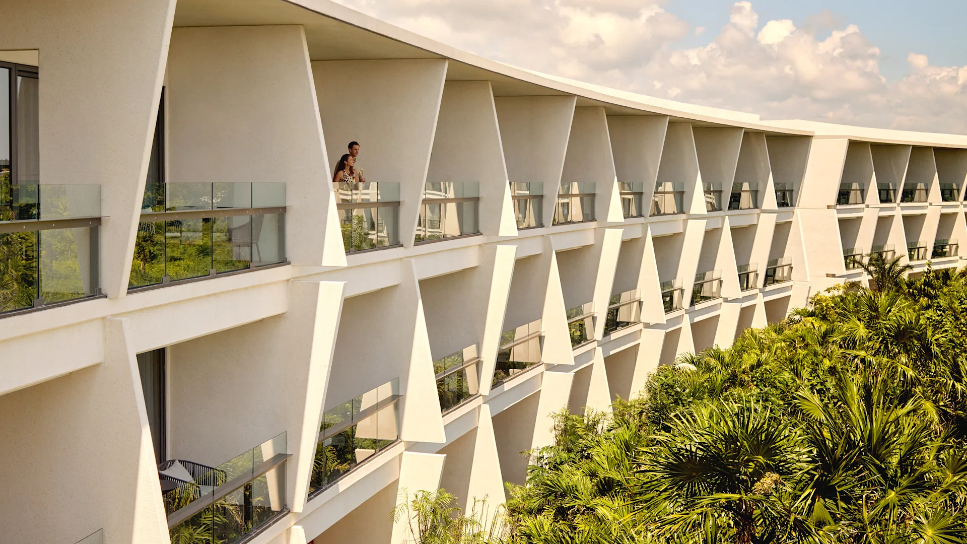 Una arquitectura audaz y moderna que utiliza materiales naturales para integrarse en el bosque tropical. Las habitaciones presentan tonos orgánicos y baños de inspiración termal con vistas espectaculares a la costa.