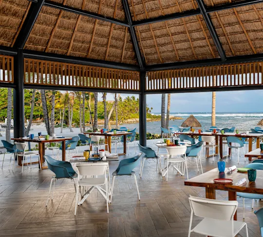 Los chiringuitos, que salpican las playas de todo el mar Caribe, sirven bebidas refrescantes y refrigerios bajo una palapa tejida. Los tres chiringuitos (Crudo, Carbón y Leña) sirven un menú de delicias para la piscina que gira constantemente en torno al aire libre.