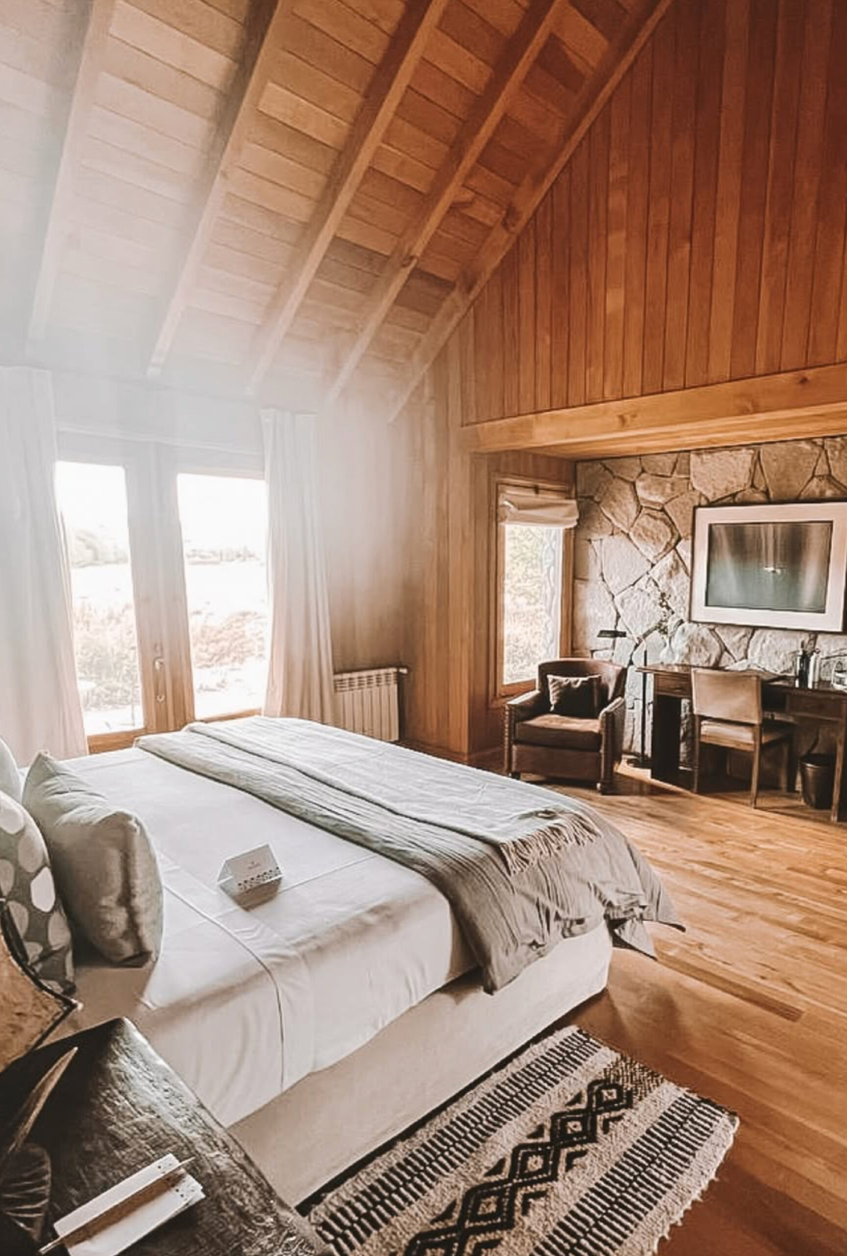 La cabaña es un ejemplo del lujo natural, donde la arquitectura cálida, rica en maderas que homenajean la tradición local, tiene todo el confort y bienestar que buscan los huéspedes exigentes.