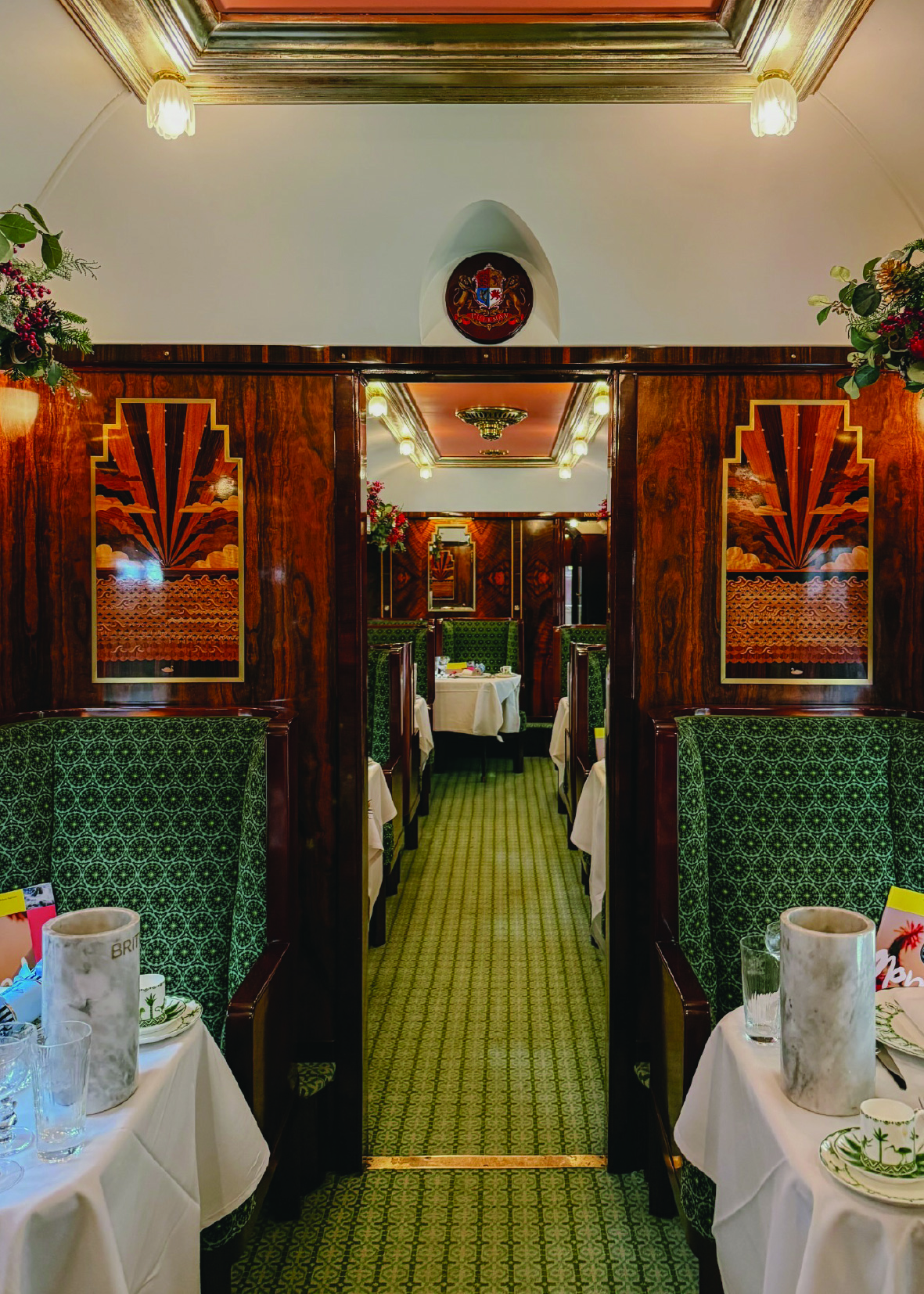Partiendo de la estación London Victoria, los pasajeros son transportados a una era de glamour Art Deco, recibido con una copa de champán y rodeado de un ambiente impresionante.