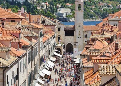 En su interior, la ciudad es un mosaico de épocas: monasterios románicos, palacios renacentistas, iglesias góticas y logias venecianas. El Palacio del Rector evoca la edad de oro de Dubrovnik como la República de Ragusa, mientras que el Monasterio Franciscano aún conserva su farmacia del siglo XIV, una de las más antiguas de Europa.